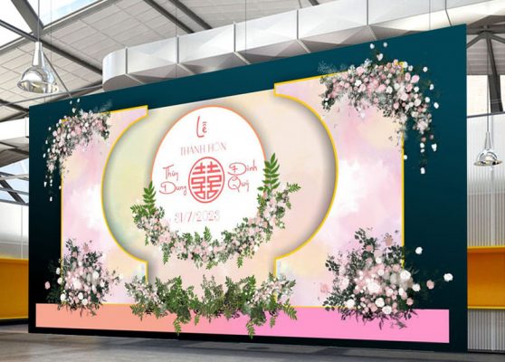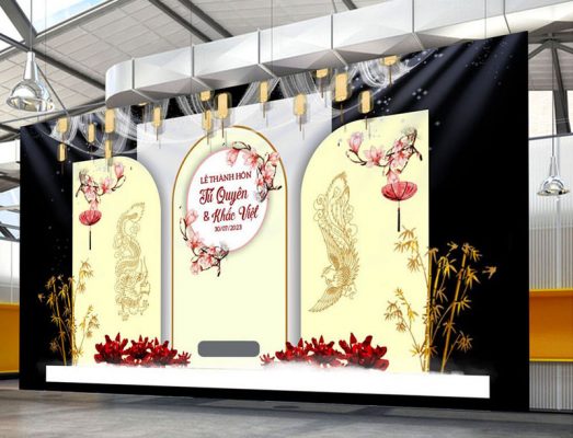 Phông cưới (backdrop) được coi là hạng mục quan trọng nhất, sánh ngang với linh hồn của buổi lễ cưới hỏi