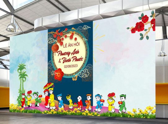 Nếu như đám cưới tại hội trường thì khu vực backdrop sân khấu sẽ là điểm sáng hút mắt suốt buổi hôn lễ thì trong đám cưới hỏi tại tư gia, phông cưới cũng là một hạng mục quan trọng không thể thiếu. Khi mà mọi nghi thức quan trọng như trao tráp, phụ huynh phát biểu, cô dâu chú rể ra mắt họ hàng đôi bên,… và đặc biệt là ghi lại những khung hình chân thực, ngập tràn cảm xúc đều được diễn ra trước phông cưới