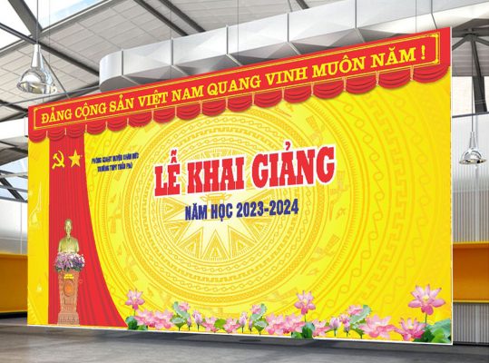 Mùa thu tới cũng là lúc trẻ chuẩn bị chào đón năm học mới. Một chiếc phông khai giảng đẹp sẽ làm cho buổi lễ trở nên long trọng, và ý nghĩa với các thế hệ học sinh. Đồng thời đây là vị trí lý tưởng để checkin những bức ảnh đẹp của buổi tựu trường. Nhằm giúp những ai đang có nhu cầu thiết kế phông nền sân khấu khai giảng năm học mới. Chúng tôi xin gửi đến bạn một vài mẫu phông khai giảng ấn tượng để các bạn tham khảo. Cùng theo dõi bài viết dưới đây bạn nhé.